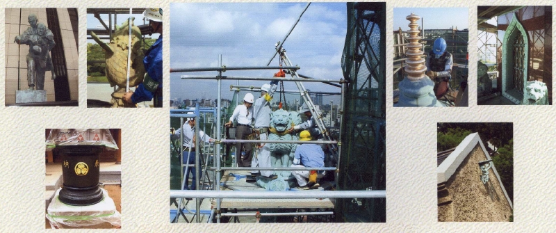 既存ブロンズ製品のメンテナンス、クリーニング工事を工場、現地にて施工致します。